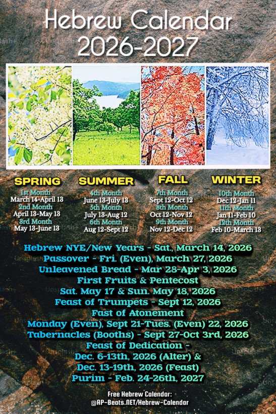 "And on the fifteenth day of the same month is the feast of unleavened bread unto the Most High" = March 28th-April 3rd, 2026 (Sat Evening-Fri Evening) [Unleavened Bread]